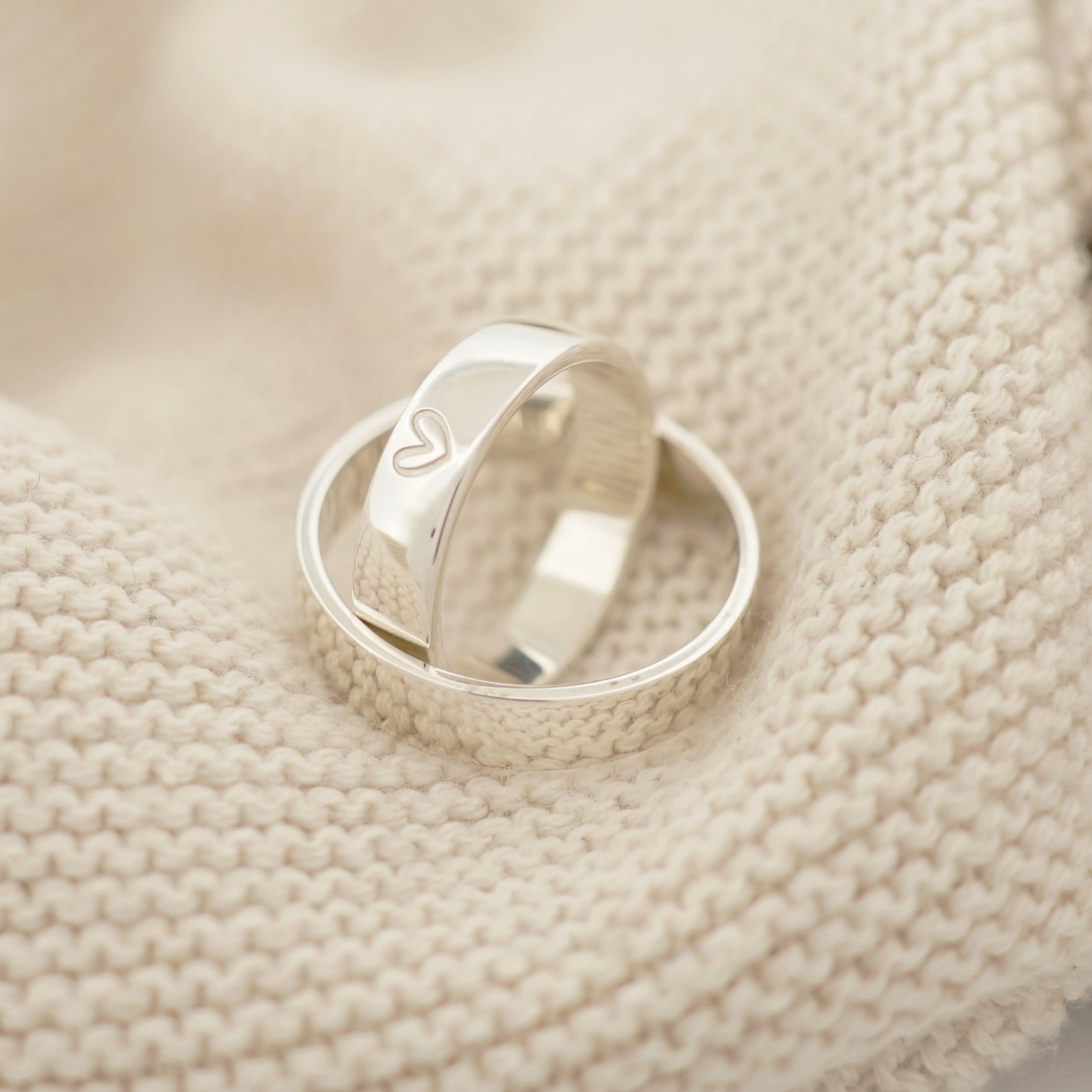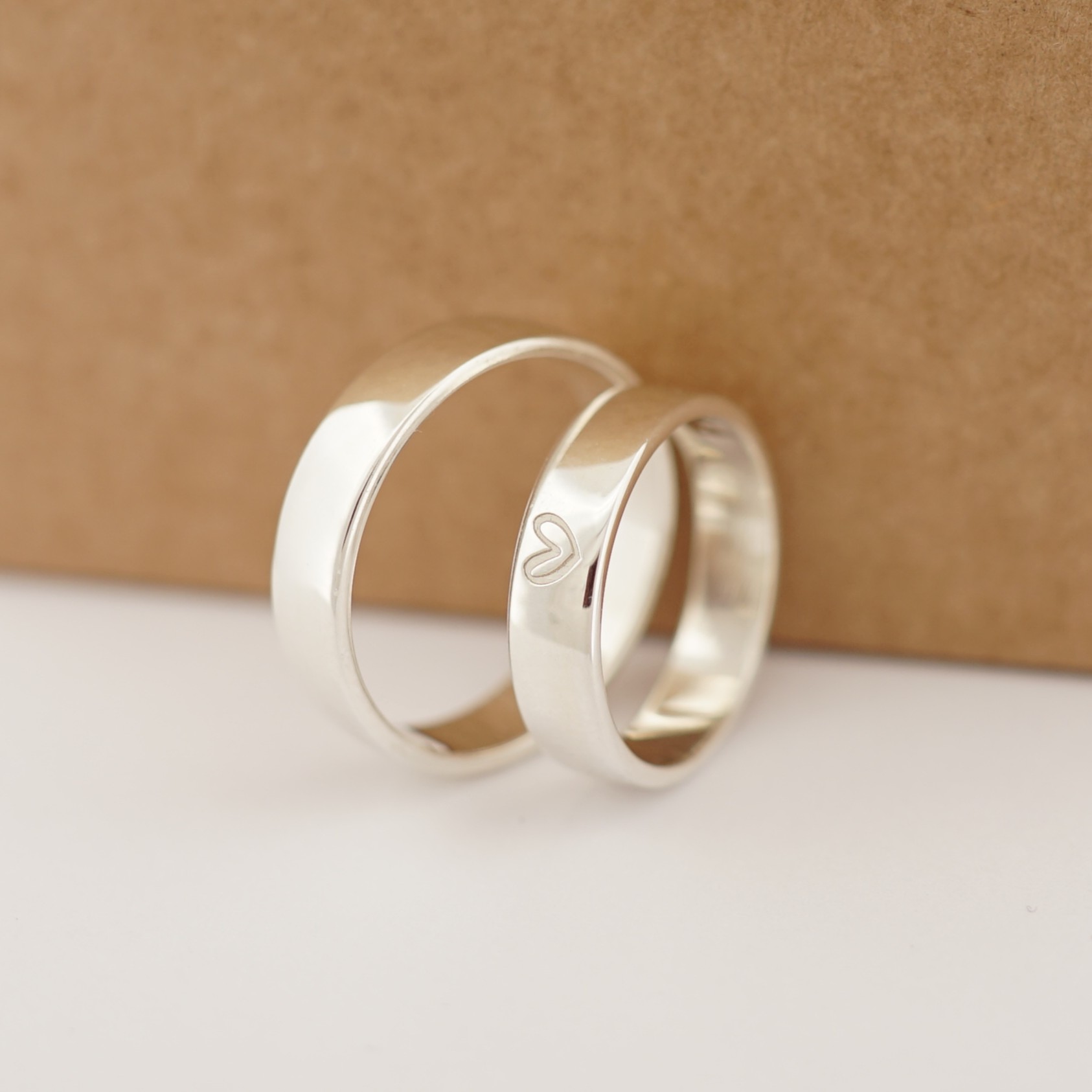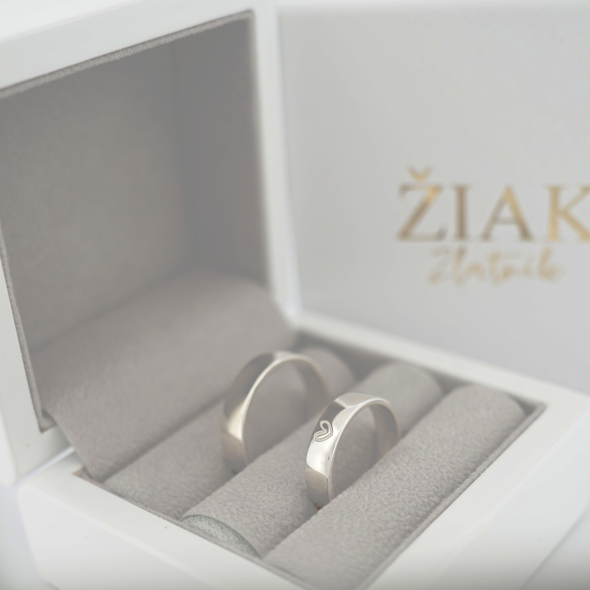 Minimalistické zlaté obrúčky zo 14 karátového zlata s jemným gravírovaným srdiečkom