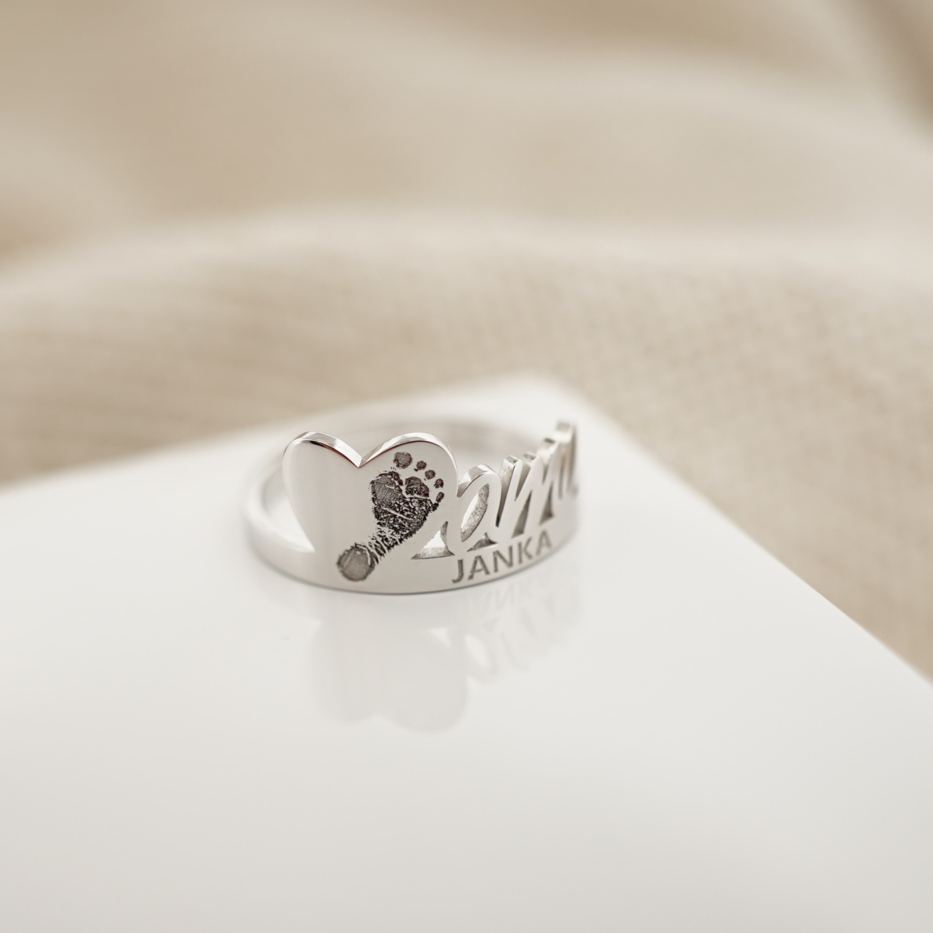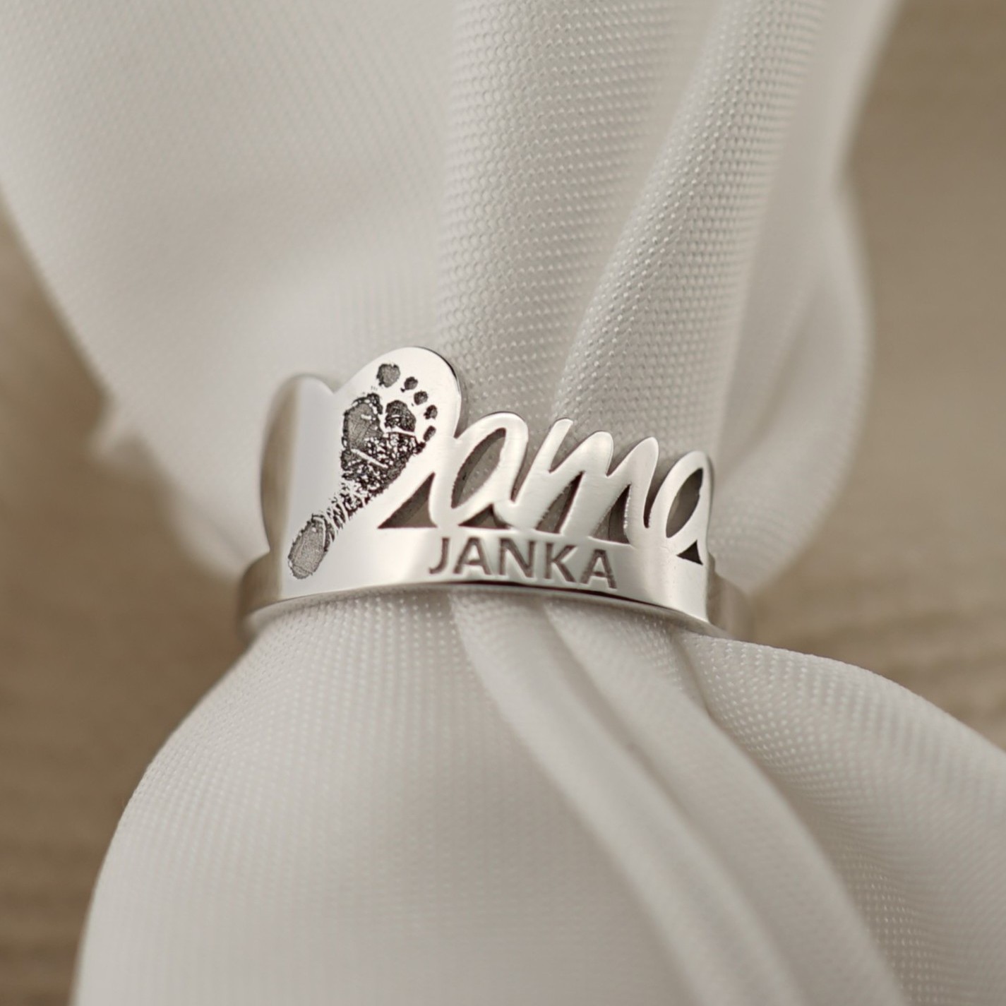 P97 Zlatý prsteň mama srdcová s odtlačkom nožičky
