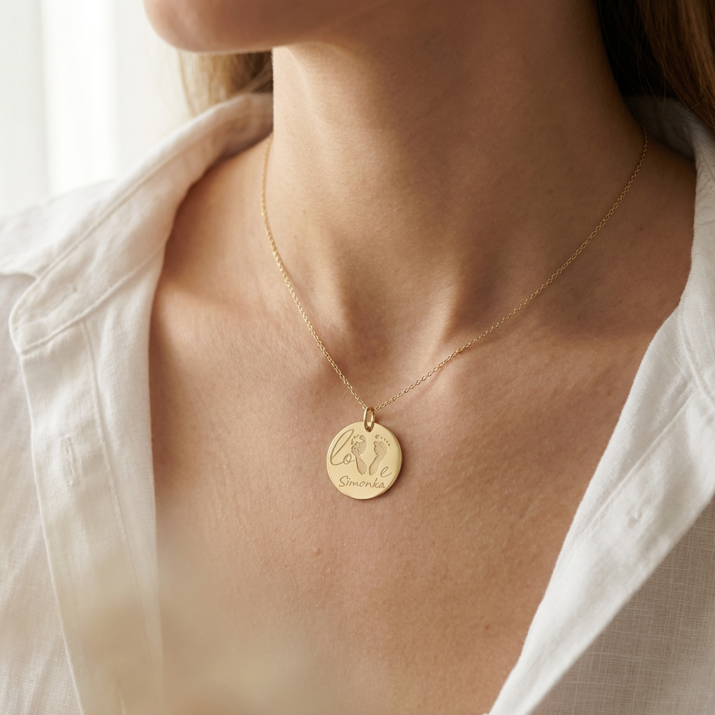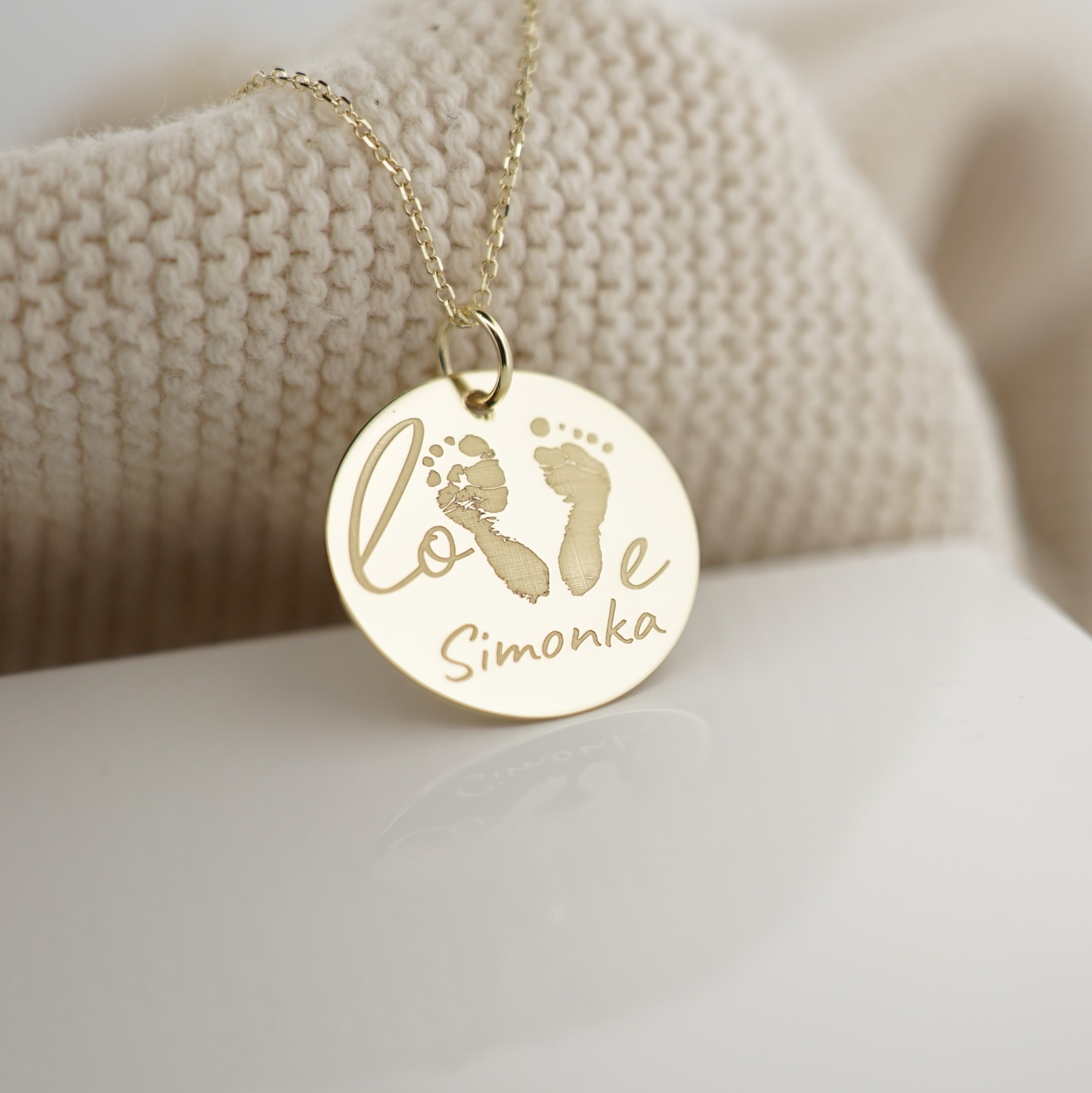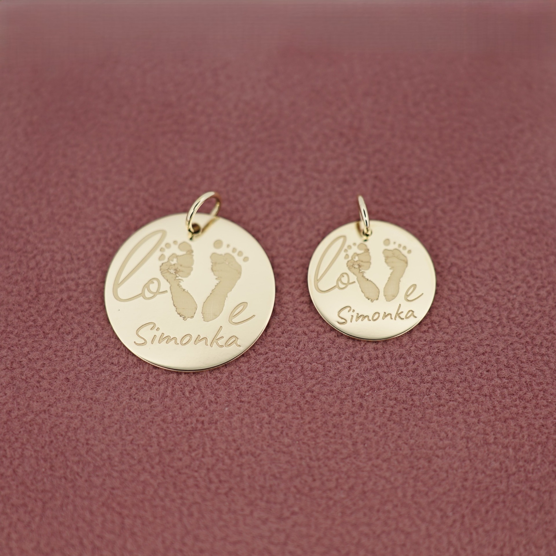 Z31 Zlatý personalizovaný prívesok LOVE s odtlačkami nožičiek