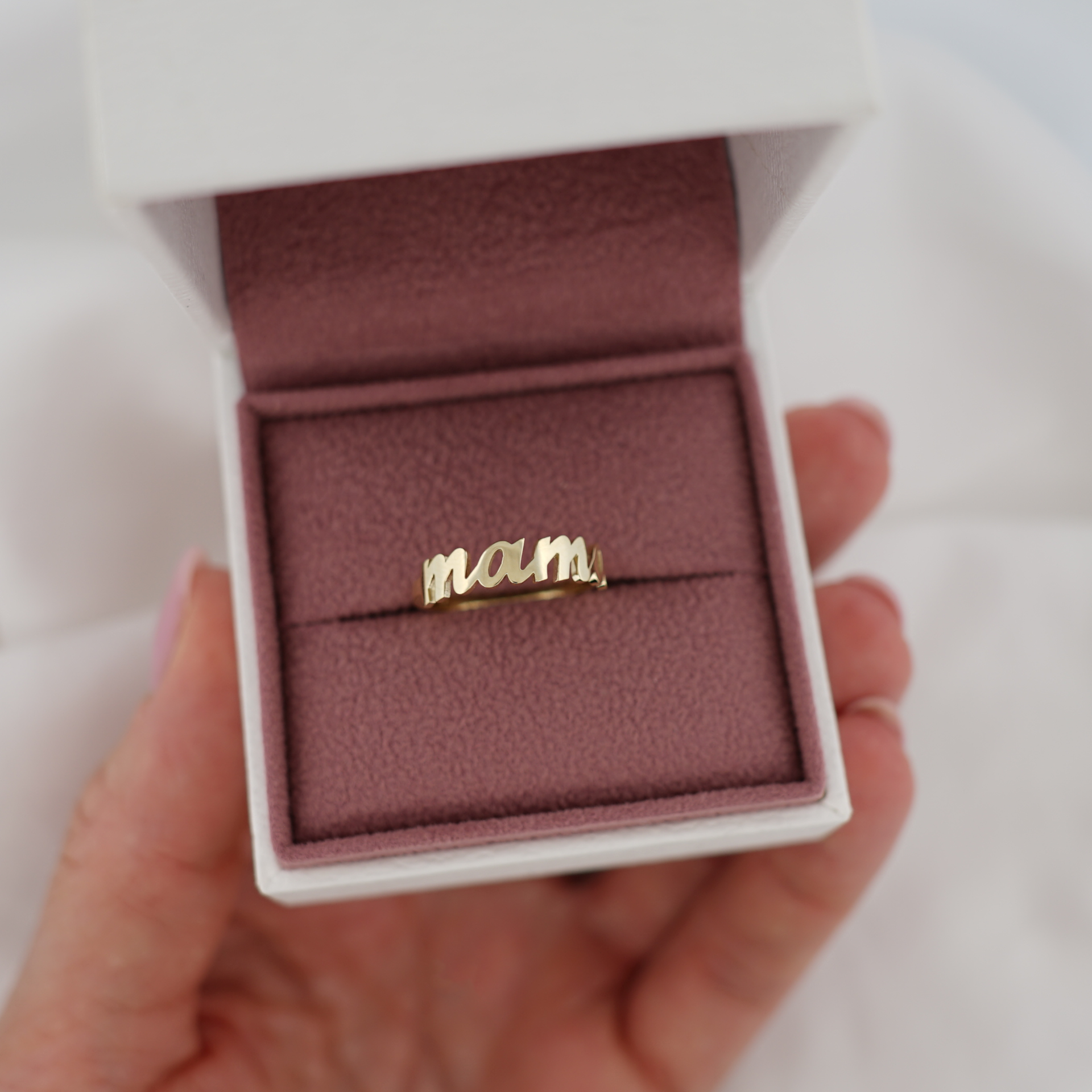 Jemný prsteň mama zo 14k zlata 585/1000, ktorý v tejto podobne nájdete iba u nás. Je pre nás vždy potešením vyrábať tento krásny symbol.